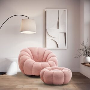 Teddy Boucle Fabric Pink 1 Seater Swivel Sofa with Footstool MIRIELLE