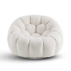 Teddy Boucle Fabric White 1 Seater Swivel Sofa ATRANI