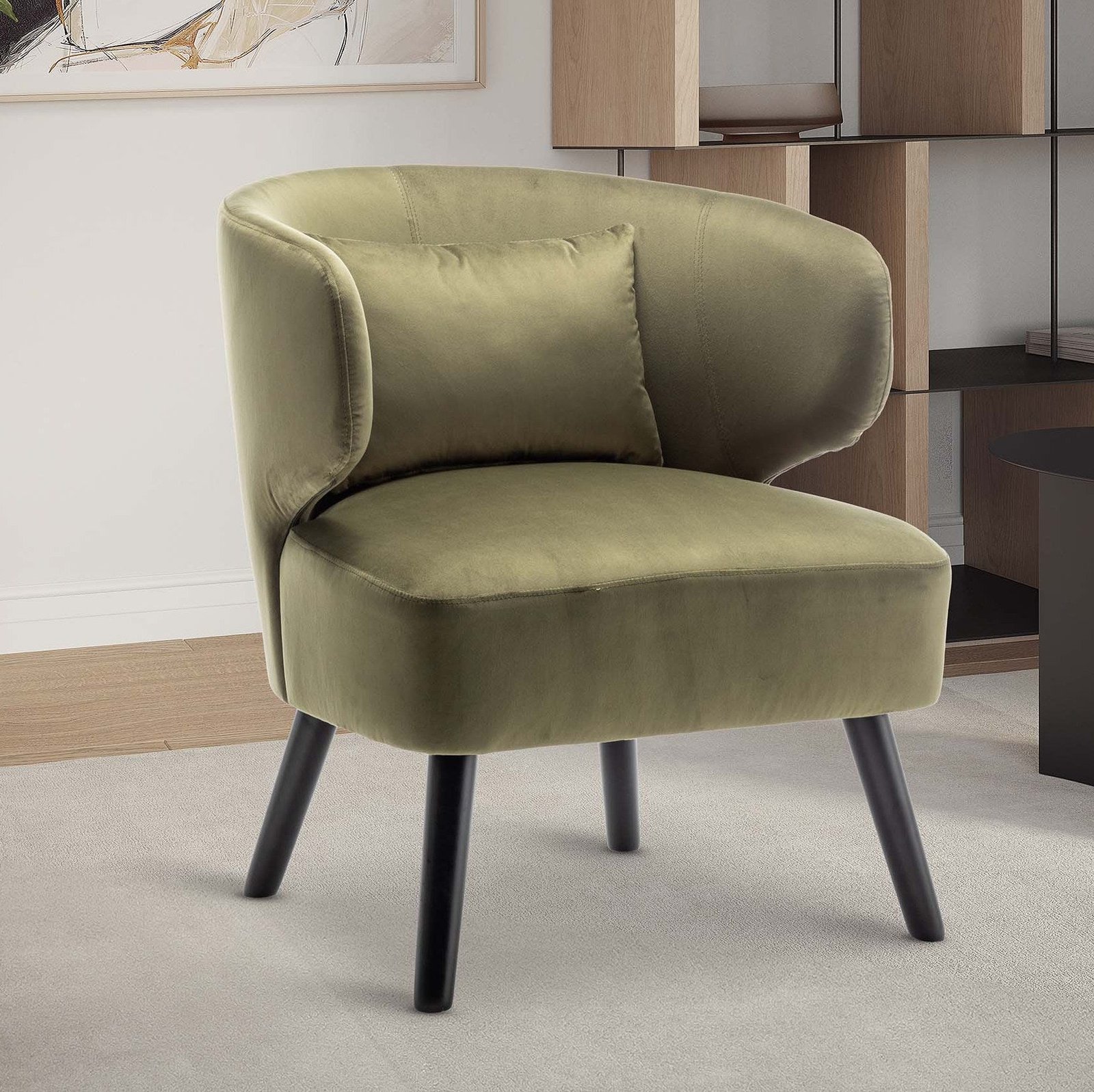 The Velvet Sage Green Chiara Accent Chair is an eye-catching and vibrant addition to your living room or bedroom. This accent chair is upholstered in beautiful polyester velvet fabric, providing a comfortable and stylish seating option to meet your needs. The velvet fabric has a sheen that reflects the light, a unique property that makes it sought after. The elegant upholstery makes the Velvet Sage Green Chiara Accent Chair a stunning accent piece to incorporate into your home.